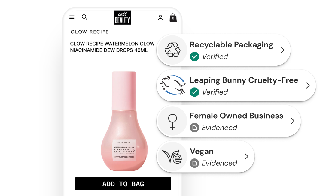 They are working with existing certification providers such as Cosmos, Cradle to Cradle, Leaping Bunny and many others to provide and assimilate existing certification. They are extending this with self-evidenced proof from the manufacturers themselves – for example information regarding a product's social impact, such as fair wages, working conditions, and community contributions, are also presented. This integration of diverse sources creates a single view of the product for the consumer.